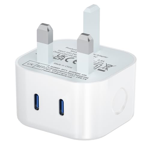 KURSEN USB C Plug Dual Port USBC Fast Charger Plug Type C Plug Compatible with iPhone 17/16/15/14/13/12/11Pro,ProMax,Plus,iPad,Watch, Fast Wall Power Adapter UK Charging Plug Type C Head