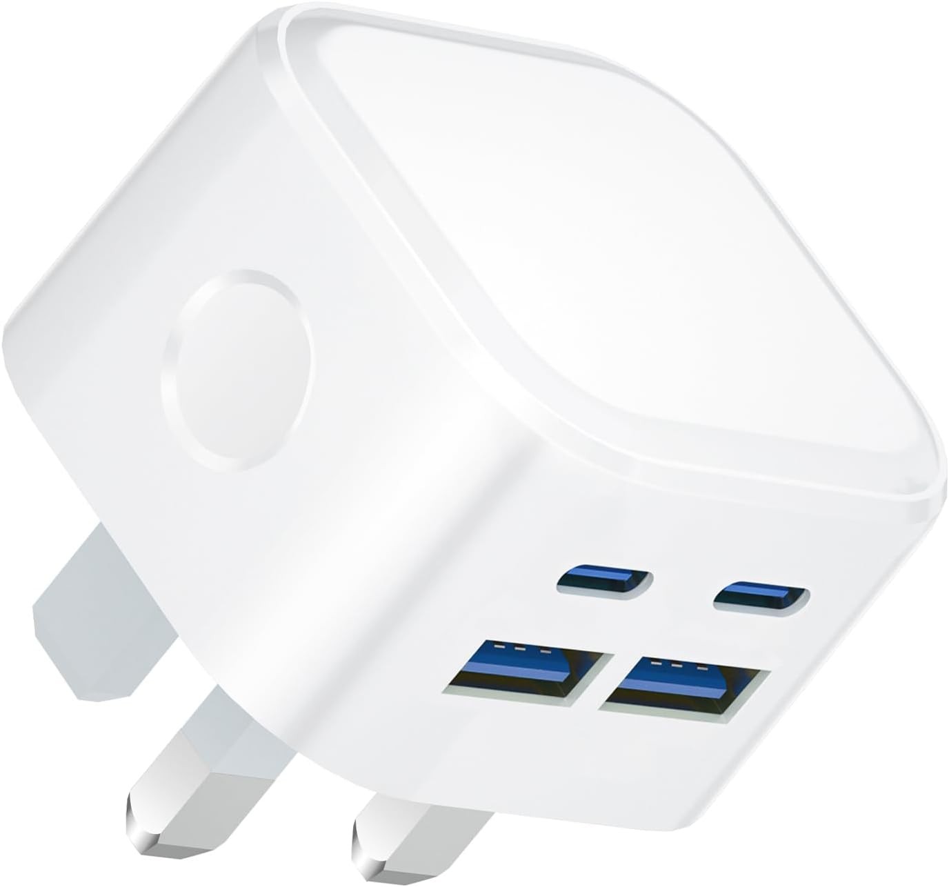 USB C Plug,2Pack 40W Fast Charger Plug 4-Port Multi USB and Type C Adaptor UK Charging Compatible with iPhone 16/16 Pro 15 14 13 12 Pro Max Plus iPad,Multiport USBC Wall Plug Power Adapter Mains Head
