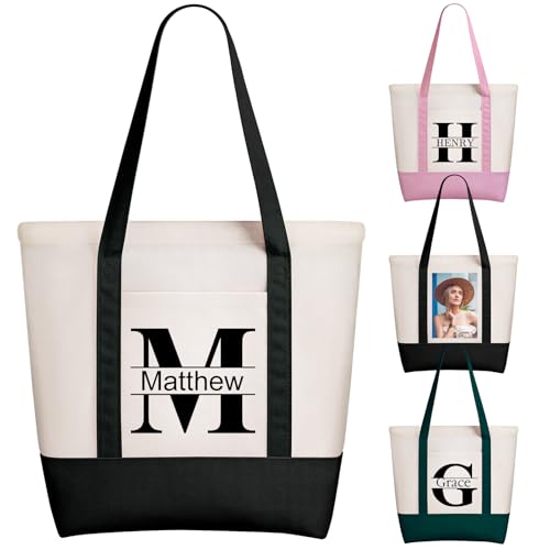 WACAR Custom Tote Bags with Monogram Alphabet, Bulk Personalised Canvas Tote Bags with an External Pocket, Reusable Grocery Bag for Women Daily Use,13.39x 3.94x15.35 in