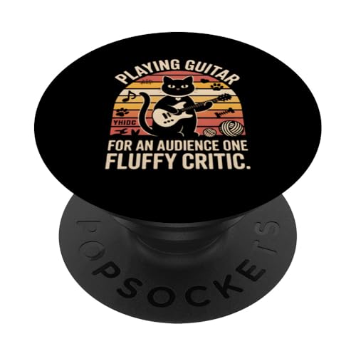 Playing Guitar For An Audience Of One Fluffy Critic Cat PopSockets Adhesive PopGrip