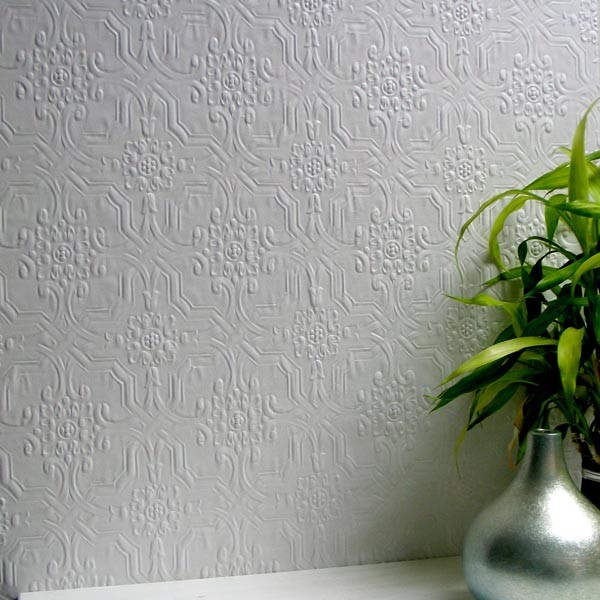 White Geometric Paintable Wallpaper Textured Luxury Vinyl Anaglypta Superfresco