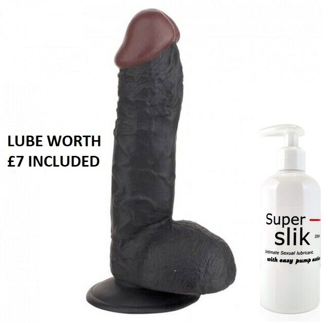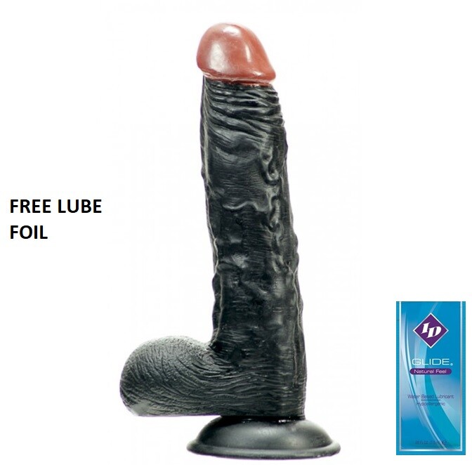 BLACK DILDO 7.5 Inch Realistic Hoodlum with Balls Suction Cup Anal/Vagina LUBE