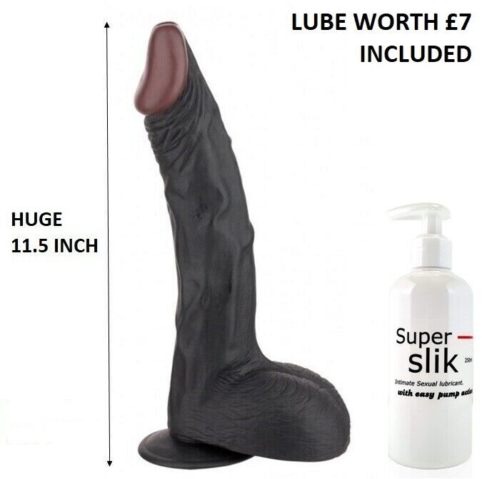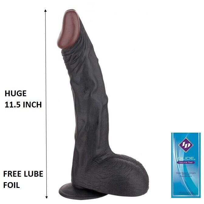 Realistic Black 11.5 Inch Dildo with Balls HOODLUM Suction Cup Anal/Vagina +LUBE