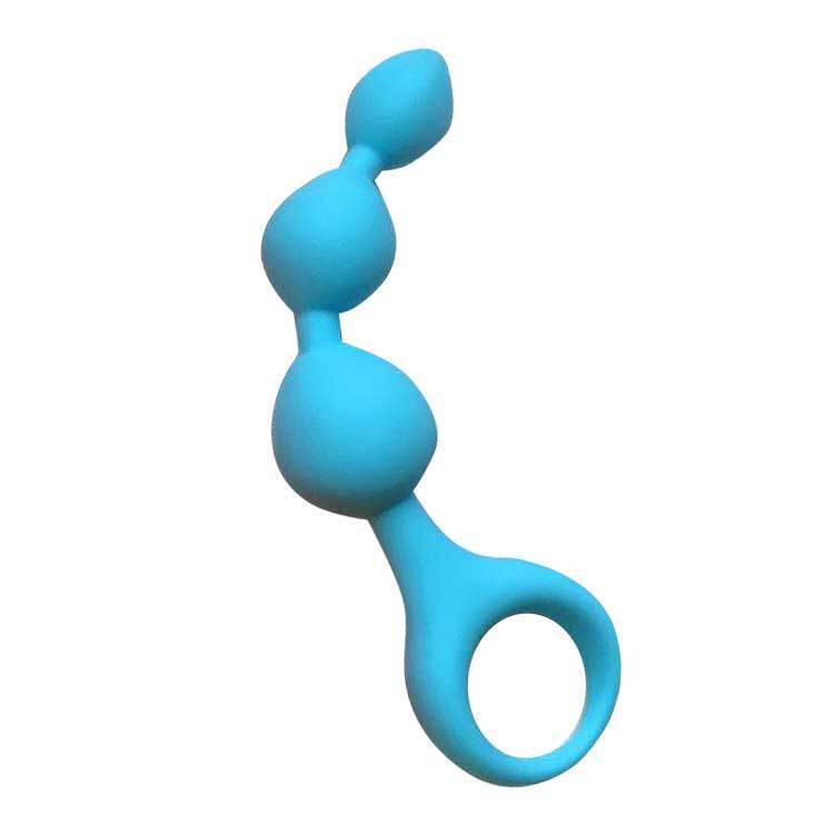 Blue G-spot Anal Balls Sex Toy-Silicone Anal Beaded Butt Plug with Pull Handle