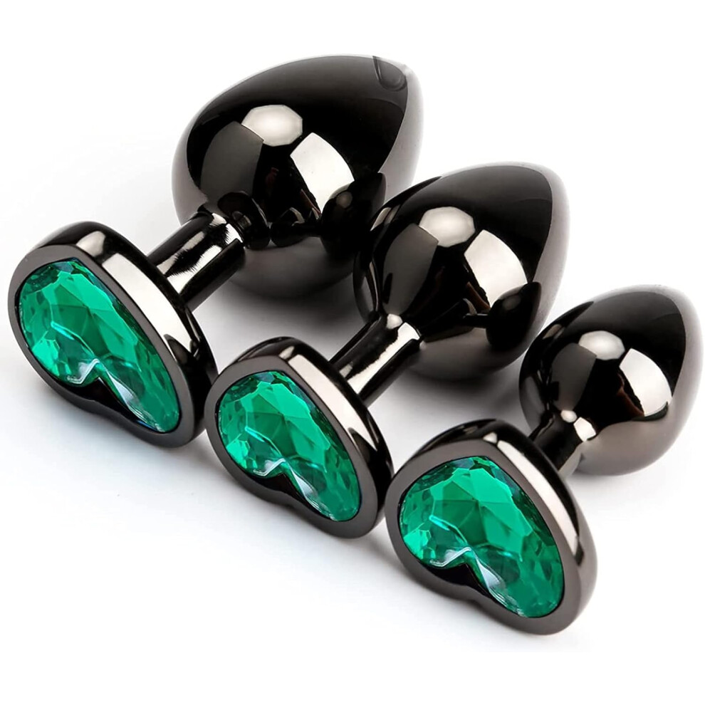 (Green) 3Pcs Luxury Metal Butt Toys Heart Shaped Anal Trainer Jewel Butt Plug Kits SM Adult Gay Anus Anal Plugs Woman Men