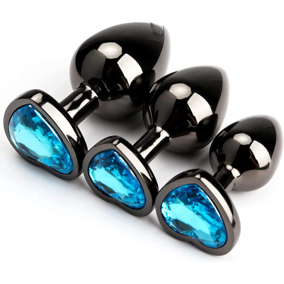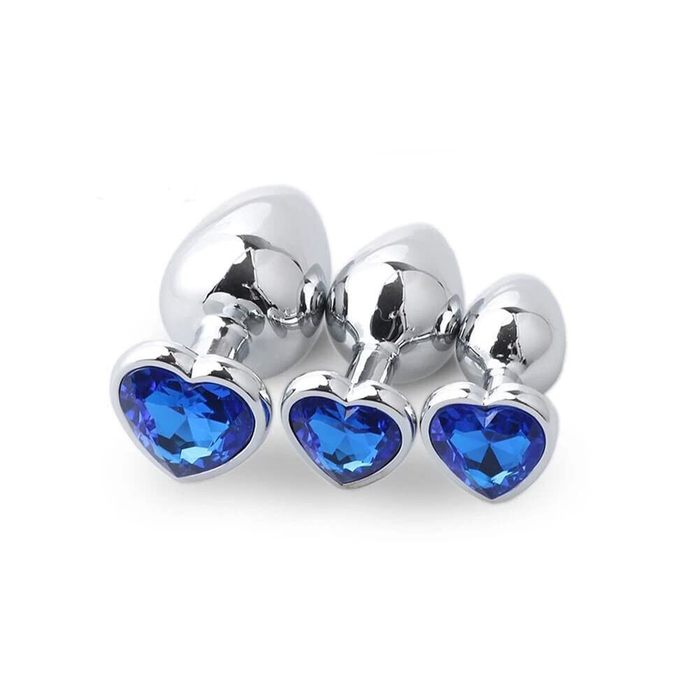 (Light Blue) 3Pcs Luxury Metal Butt Toys Heart Shaped Anal Trainer Jewel Butt Plug Kits SM Adult Gay Anus Anal Plugs Woman Men