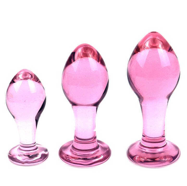 3pcs Pink Glass Butt Plug Set - Anal Expanding Plugs Glass Sex Toy - Flared Base