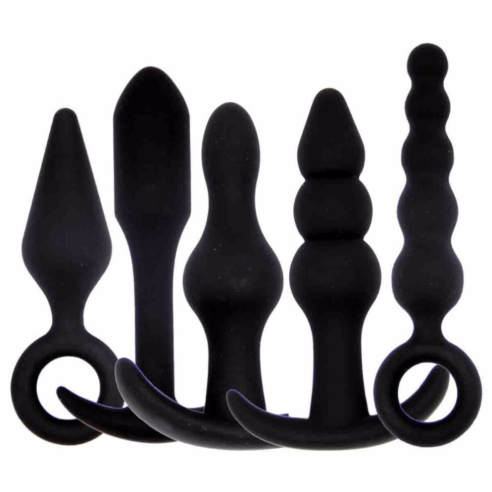 Butt Plugs 5-Pack Soft Silicone Anal Beads Plug Set Kit Black For Women And Men
