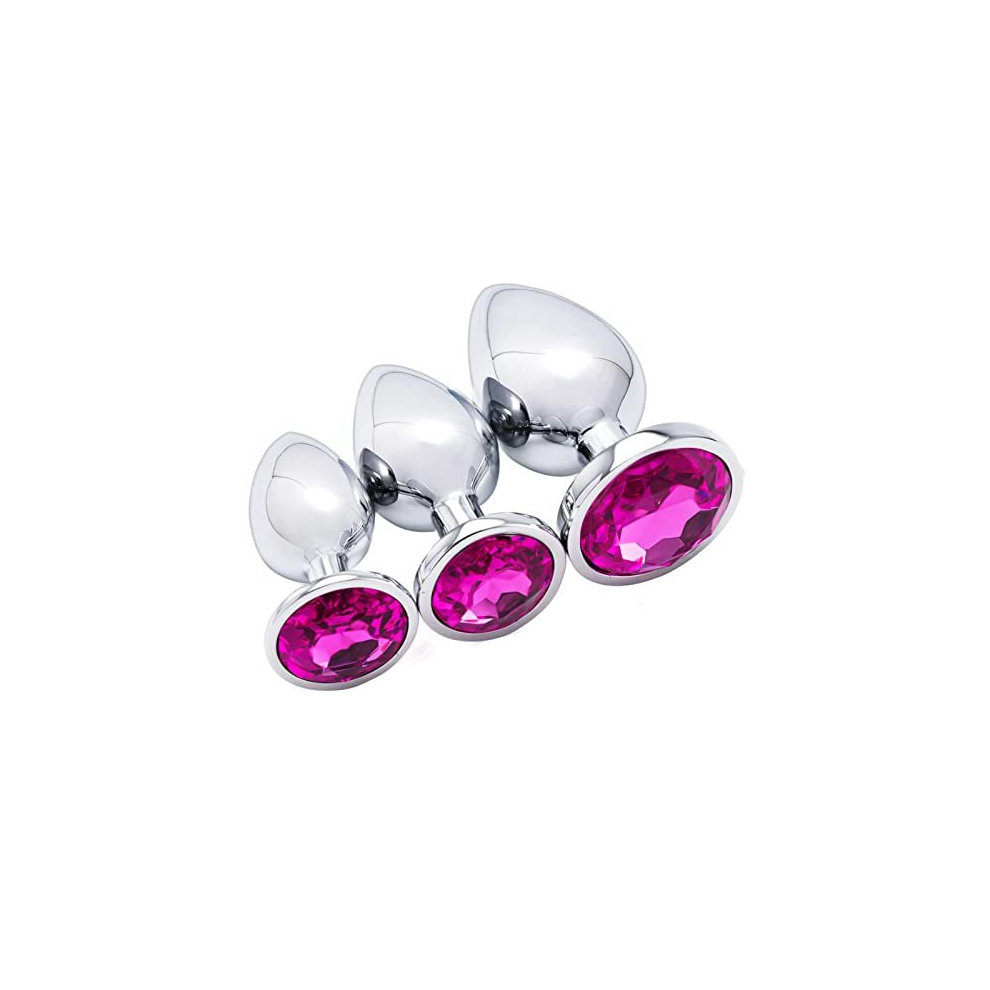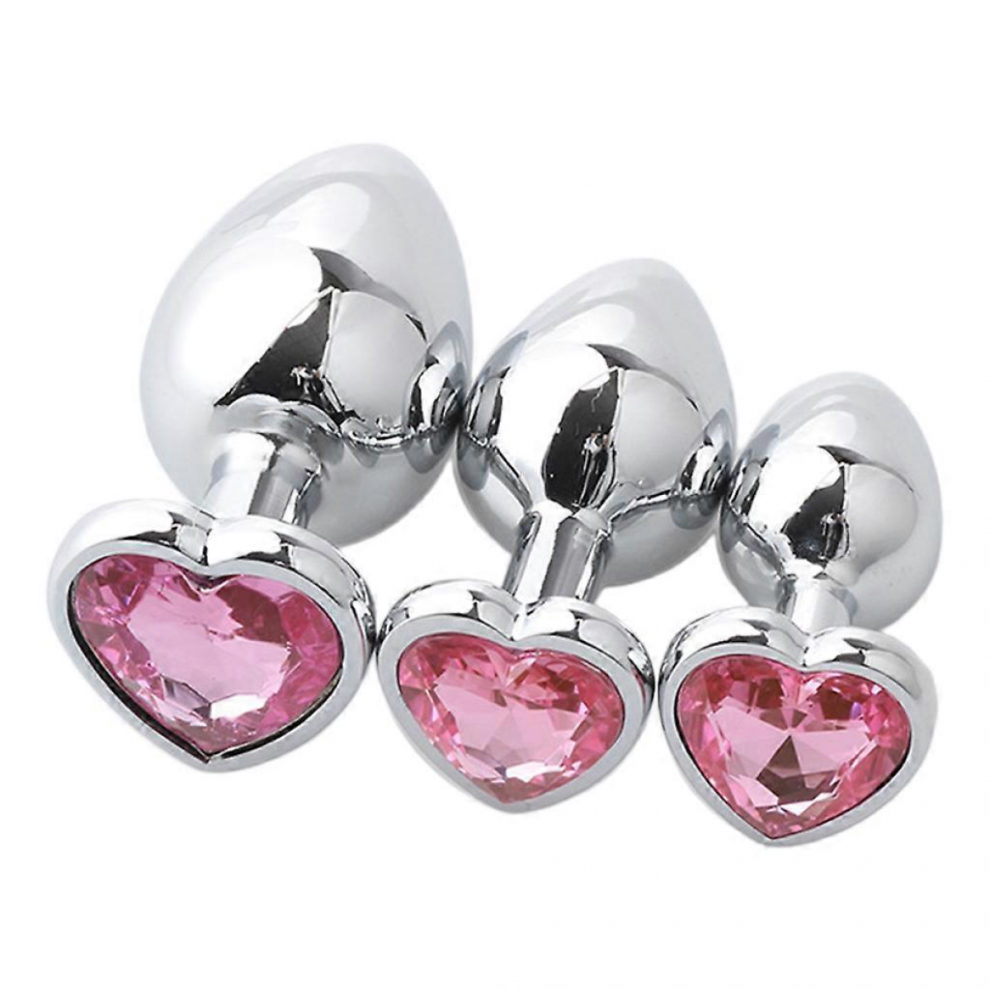 (Pink) 3Pcs Luxury Metal Butt Toys Heart Shaped Anal Trainer Jewel Butt Plug Kits SM Adult Gay Anus Anal Plugs Woman Men