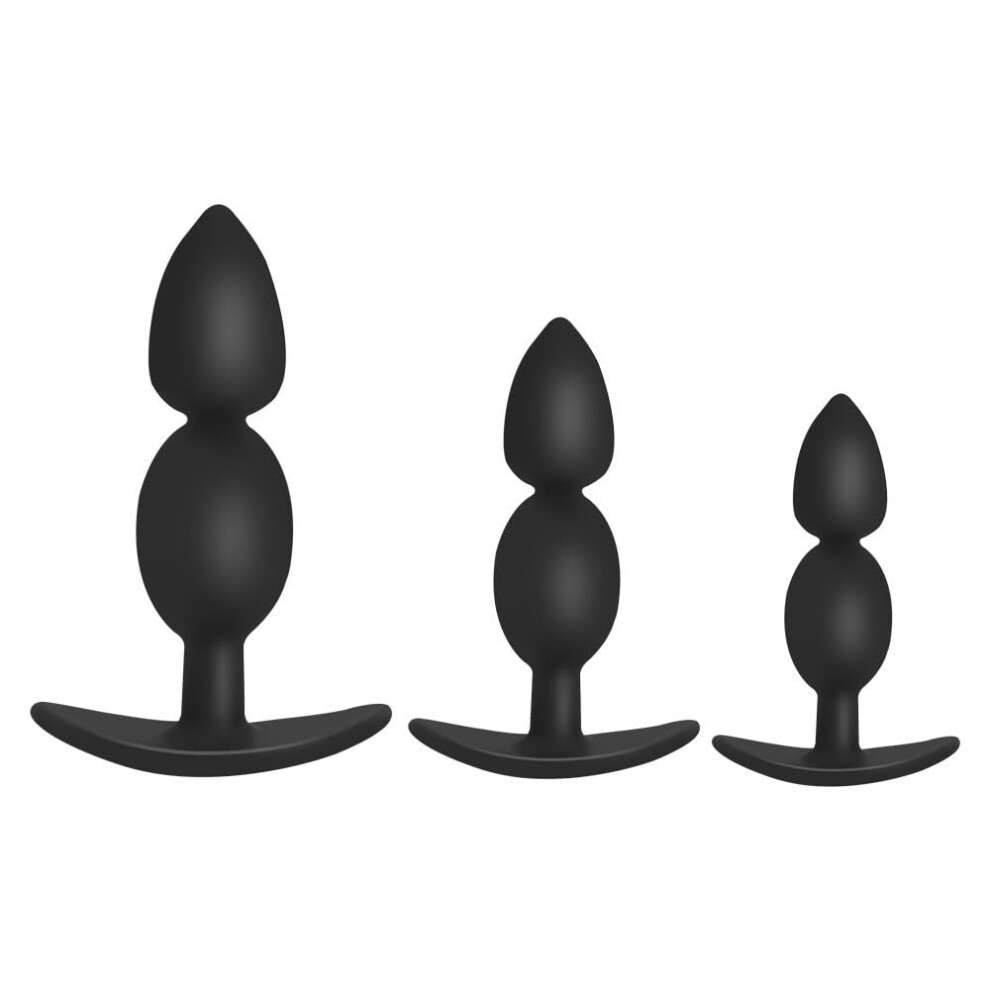 Pack of 3 Butt Plugs Soft Silicone Anal Beads Plug Set Anal Trainer Kit Black 3-Piece For Women And Men