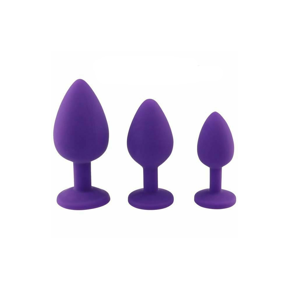 (Purple, 3 set-1) 3 Set Silicone Crystal Jewel Butt Plugs Tear Drop Anal