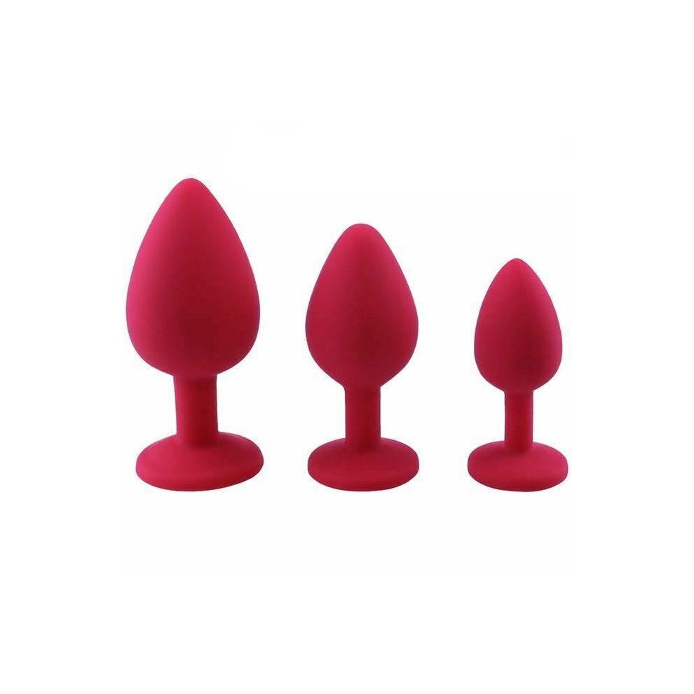 (Red, 3 set-1) 3 Set Silicone Crystal Jewel Butt Plugs Tear Drop Anal