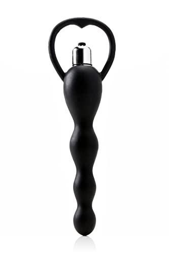 Black Silicone Beaded Vibrating Butt Plugs - Anal Beads Vibrator Battery Sex Toy
