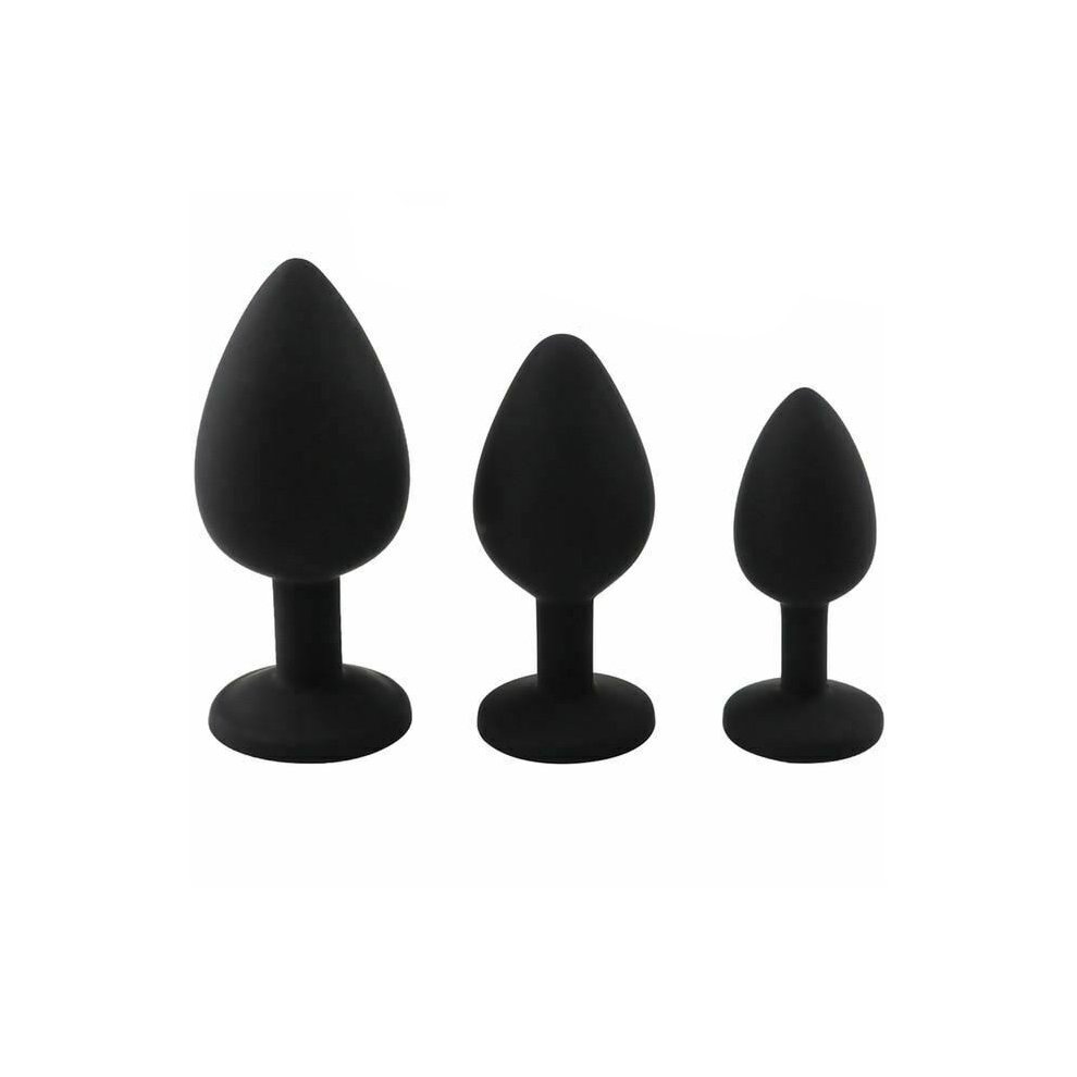 (Black, 3 set-1) 3 Set Silicone Crystal Jewel Butt Plugs Tear Drop Anal