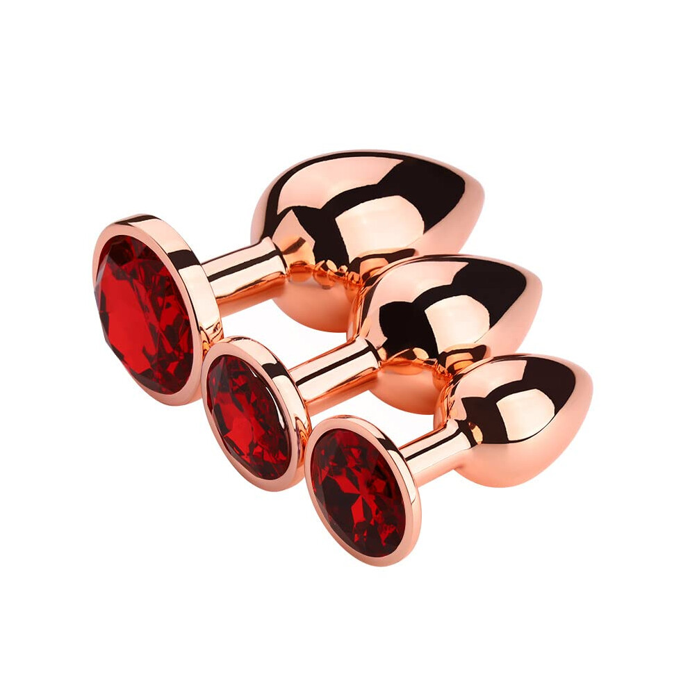 (Red) 3Pcs Luxury Metal Butt Toys Heart Shaped Anal Trainer Jewel Butt Plug Kits SM Adult Gay Anus Anal Plugs Woman Men