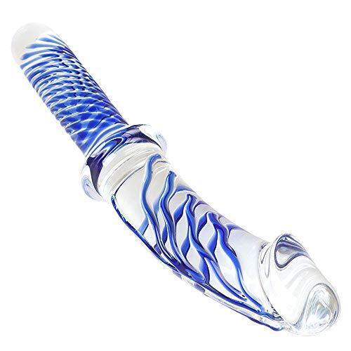 Large Detailed Glass Dildo & Handle - Glass Sex Toy Ribbed Dildo Anal & Vaginal