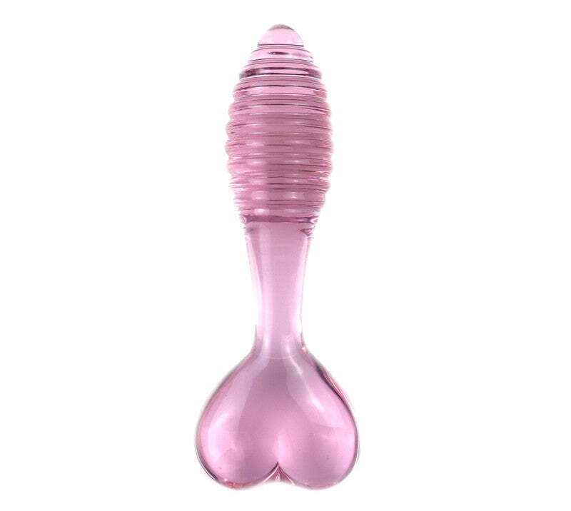 Ribbed Glass Anal Dildo Plug - Textured Vaginal Pink Dildo Plug Sex Toy