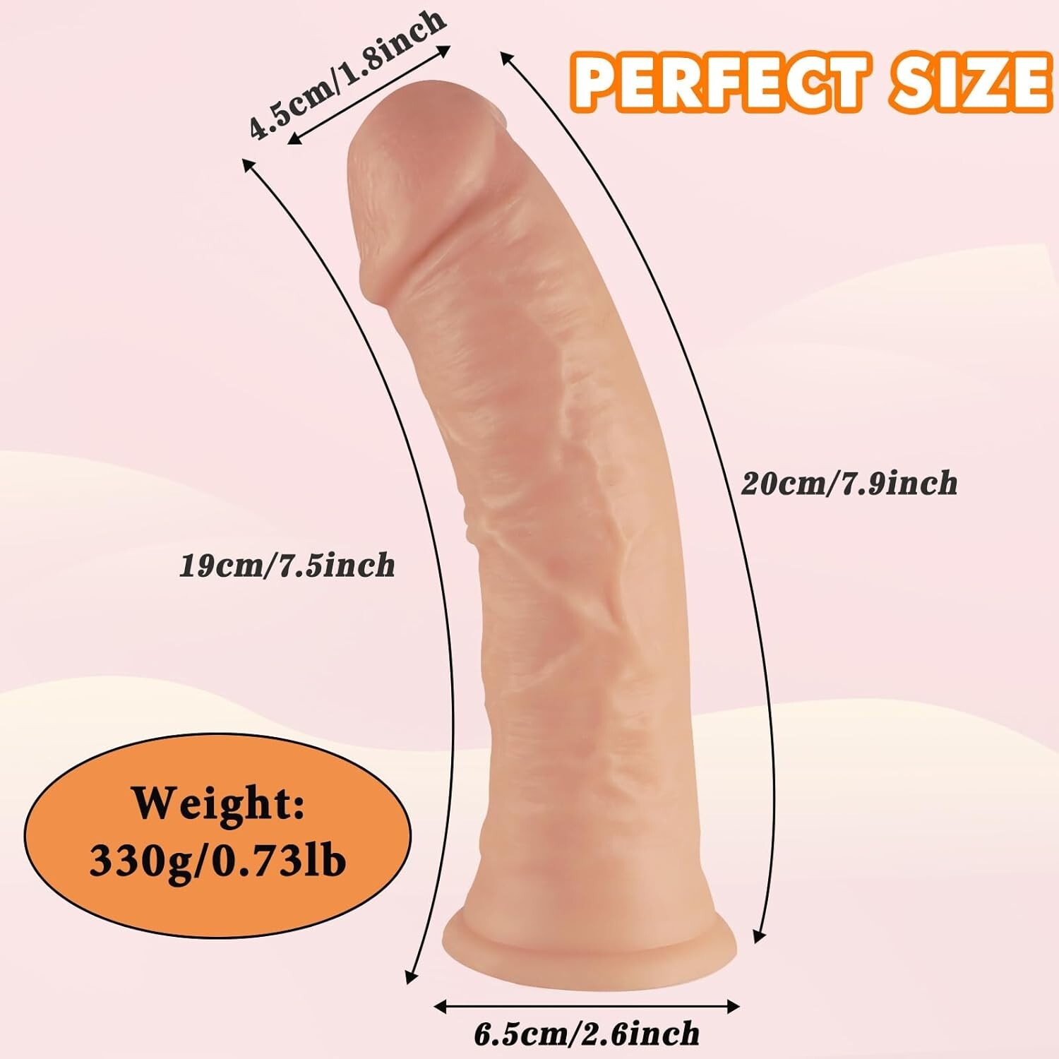 8" Realistic Dildo & Suction Cup - Silicone Sex Toy Anal & Vaginal Dildo - Pink