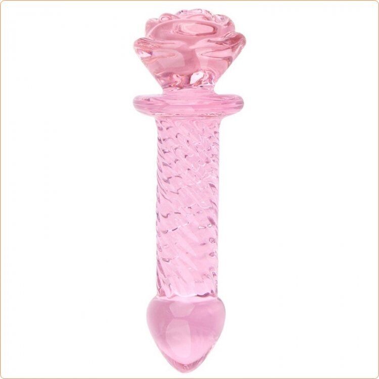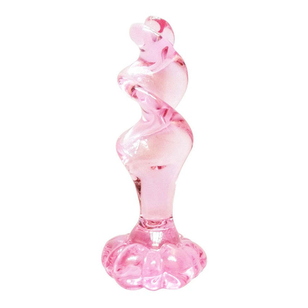 Twisted Flower Glass Butt Plug - Pink Glass Anal Plug Dildo Ribbed Sex Toy
