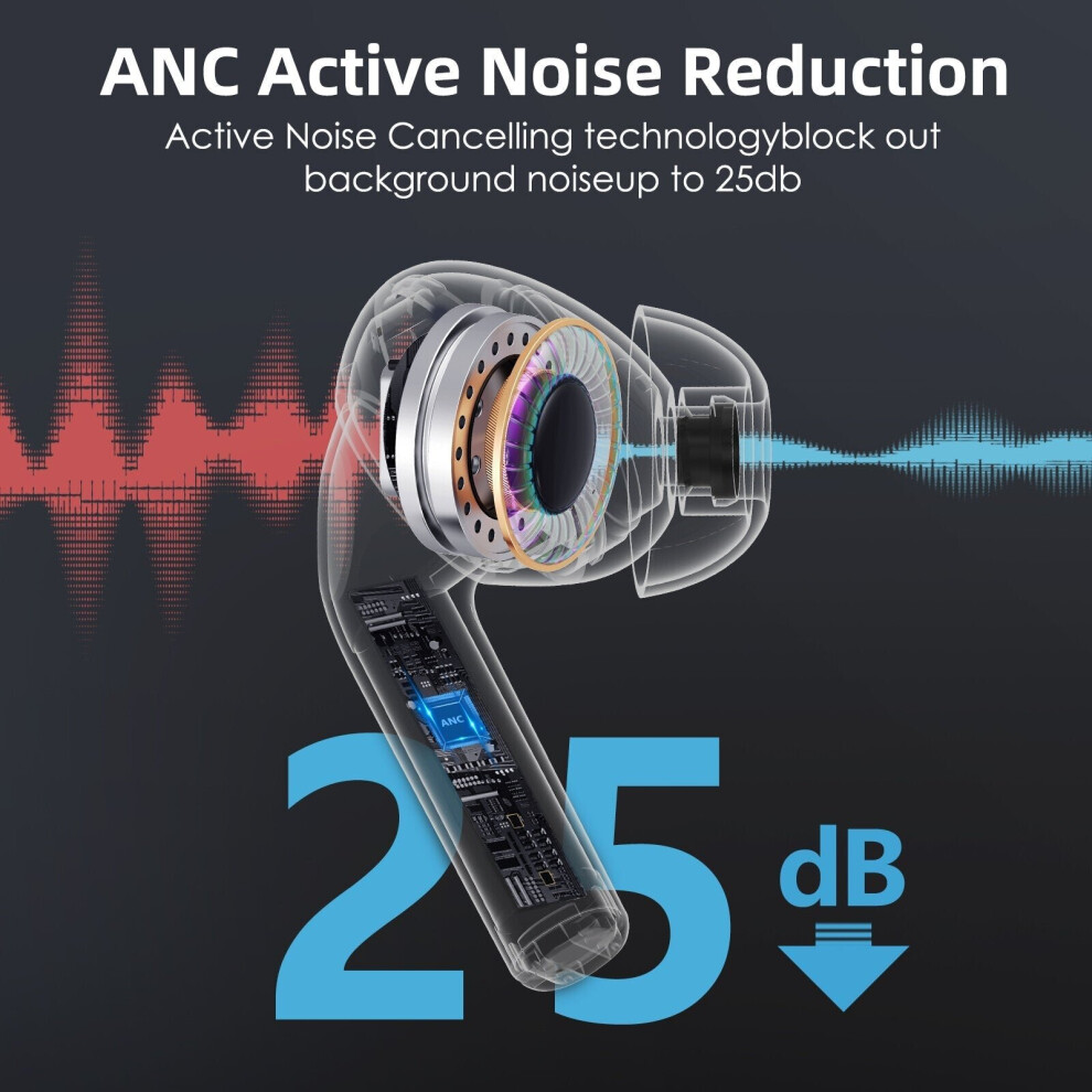 Wireless Earbuds Headphones Wireless Bluetooth Earphones ANC Noise Cancelling Mic, for iPhone/Android/IOS