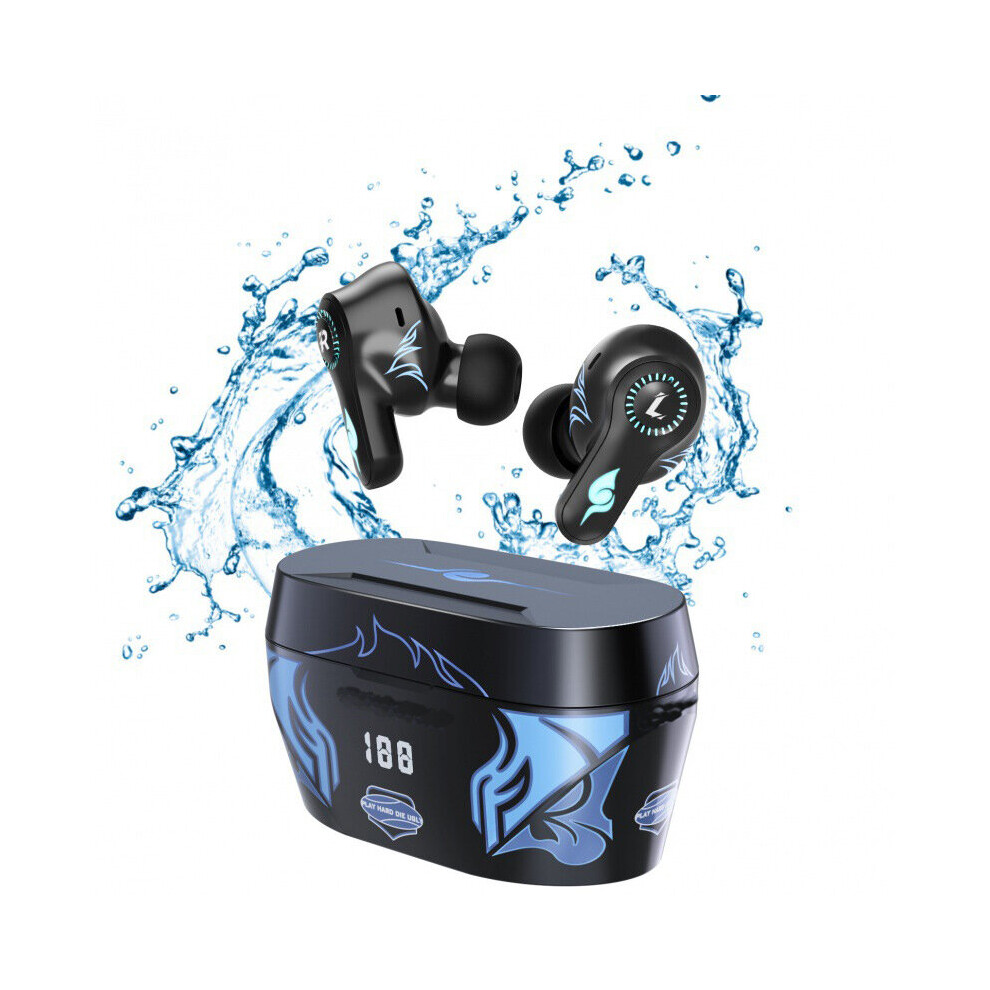 (Blue) TWS bluetooth 5.2 Earphones ANC Active Noise Cancelling Wireless Headphones Sport Gaming Music Touch Control Earbuds Headset with Mic