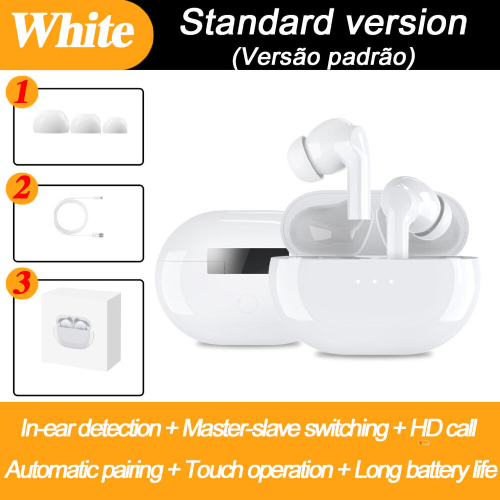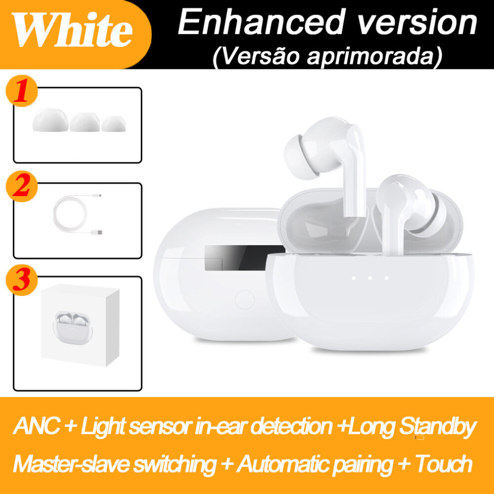 (White) TWS ANC Active Noise Cancelling bluetooth Earphones Digital Display Touch Control Binaural Call In-ear Earbuds