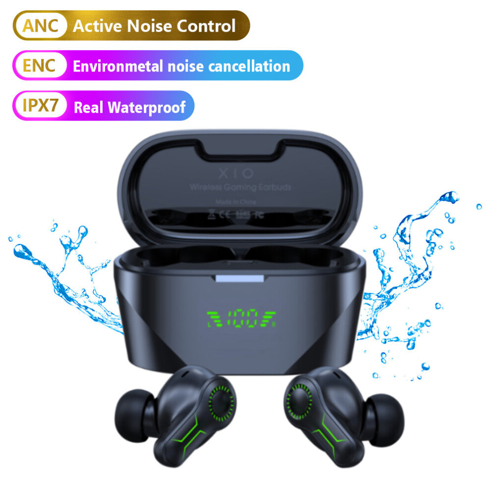 (a-ANC ENC IPX7 black) Gaming Headphone Real Waterproof TWS ANC Fone Bluetooth Earphones Noise Canceling Wireless Earphone With Mic Handfree Earbuds