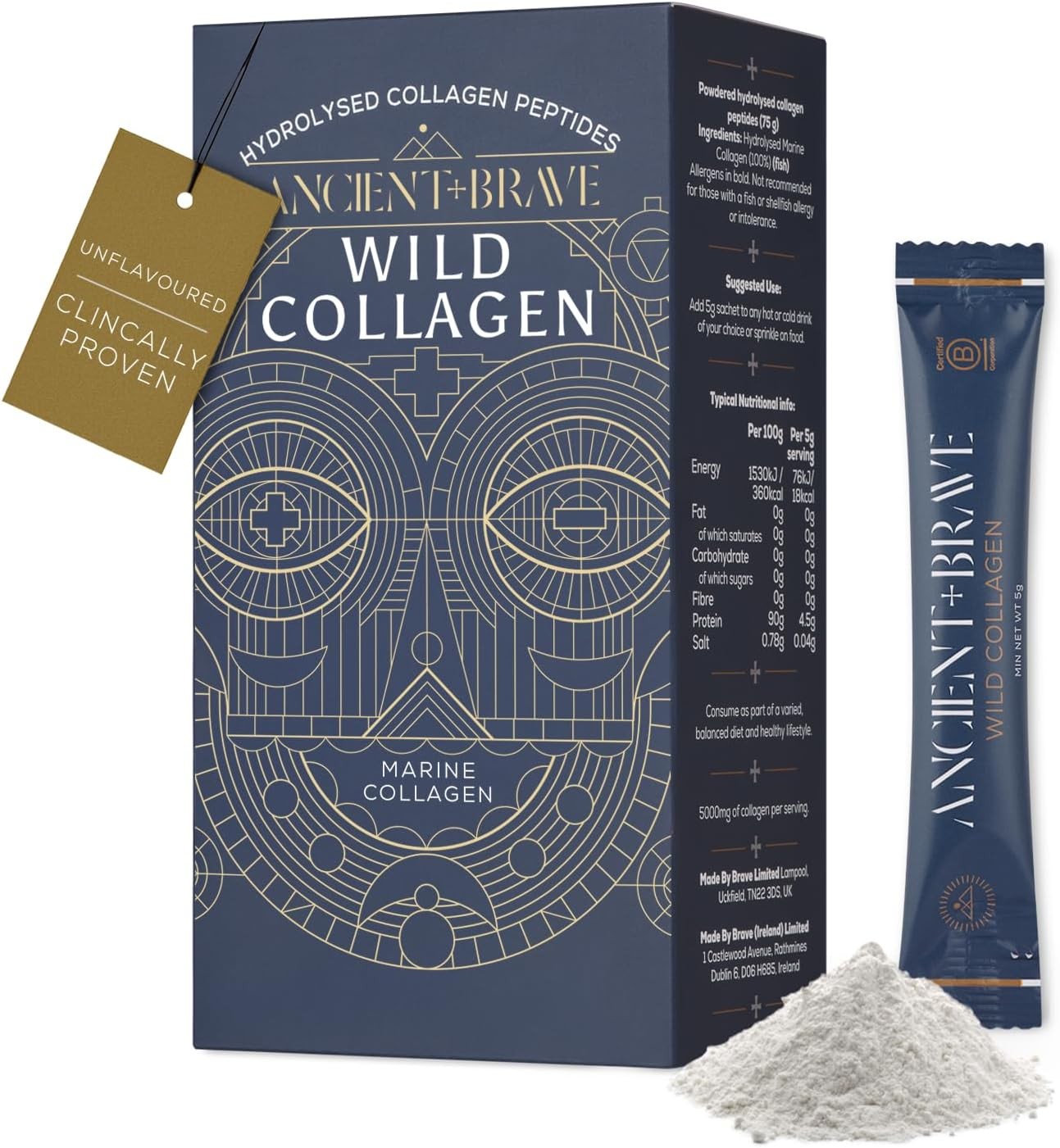 Ancient + Brave Wild Collagen Powder Sachets 15 x 5g - Pure Hydrolyzed Marine Collagen Peptides Supplement (Fish) - High Protein for Women - High Protein - Beauty, Skin - 15 Day Supply