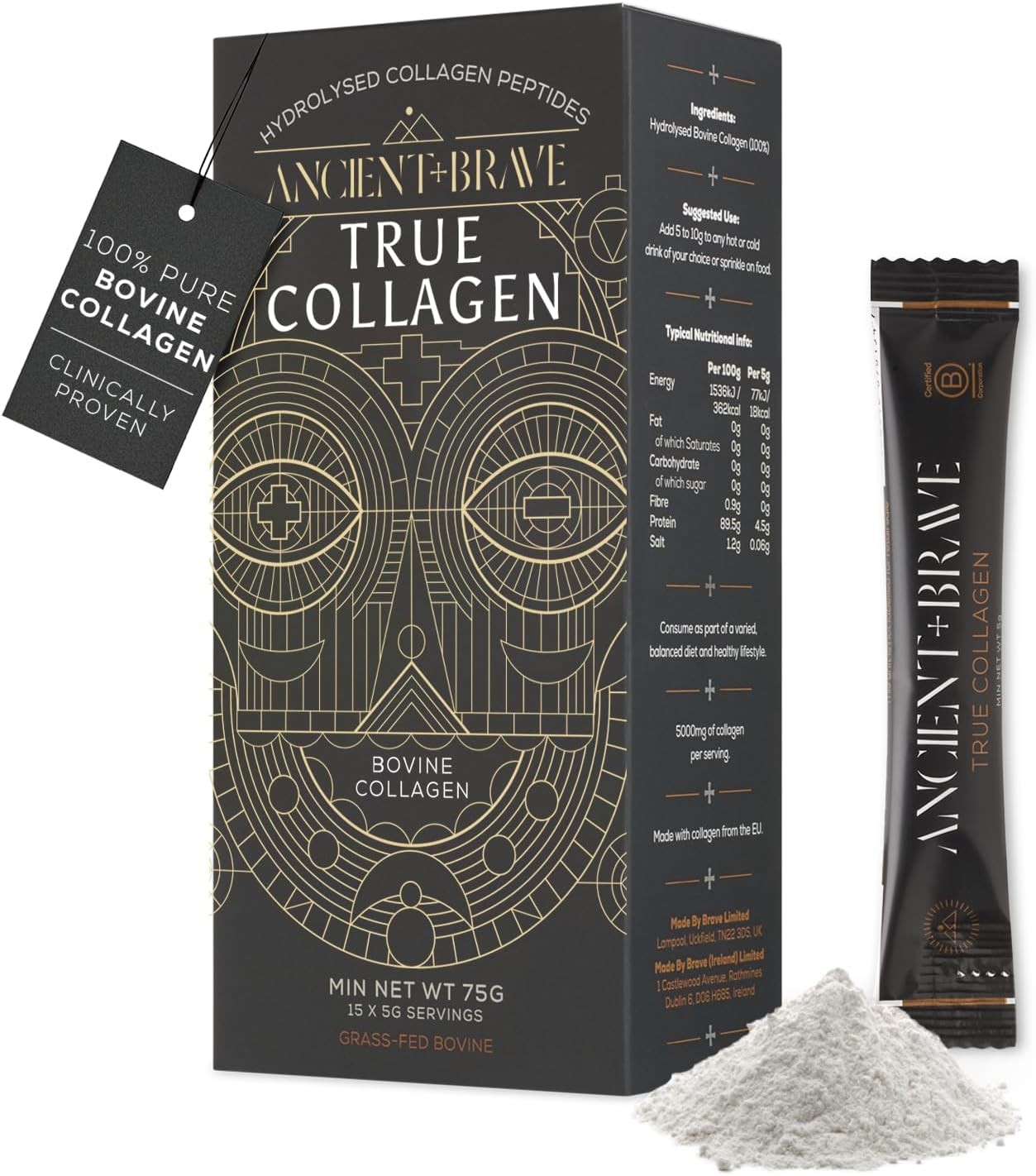 Ancient + Brave True Collagen Sachets 15 x 5g - Bovine Collagen Powder - 100% Hydrolysed Collagen Peptides (Type 1) - High Protein - Fasting & Keto Friendly - Neutral Tasting, Skin, Hair & Nails