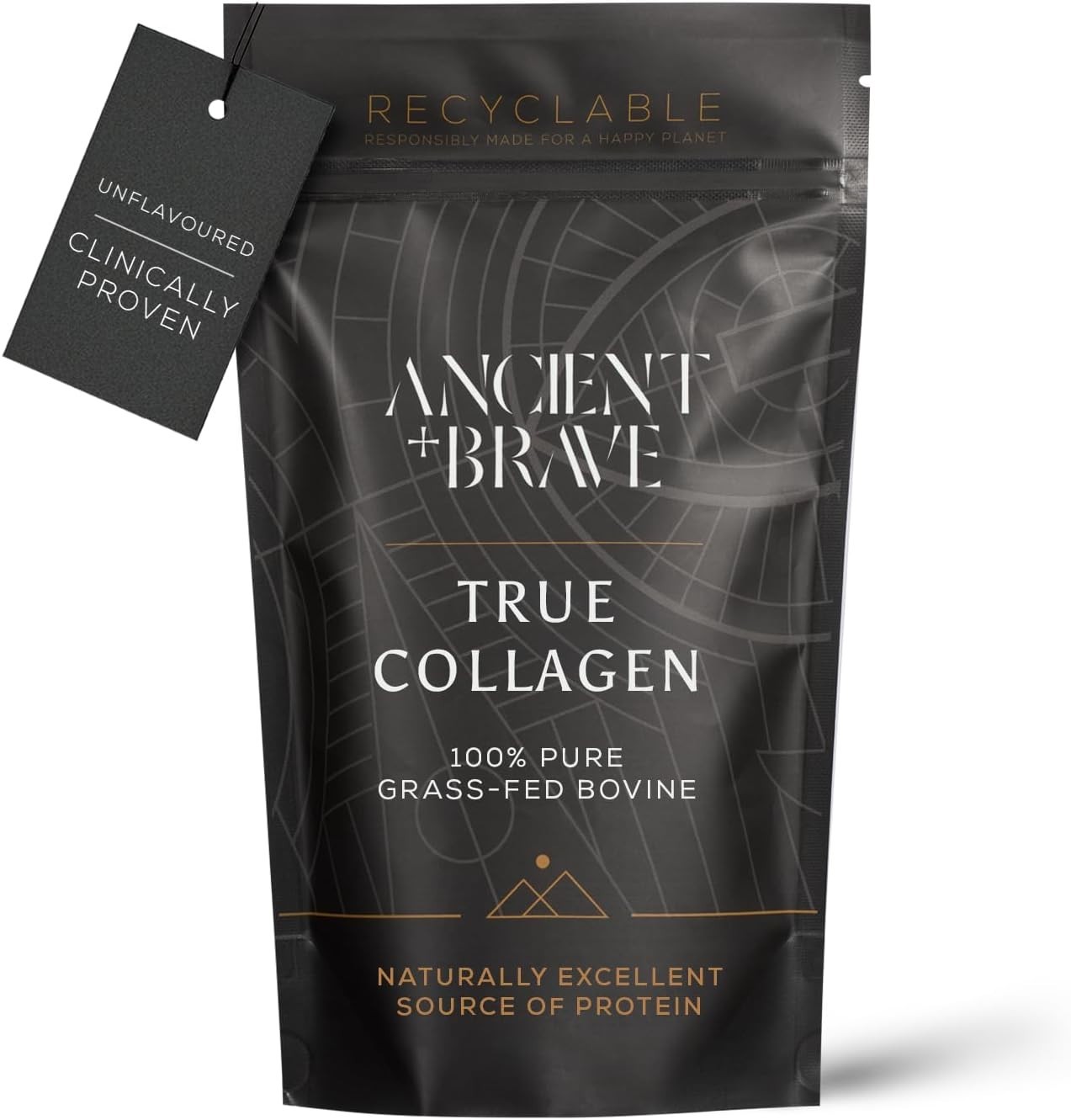 Ancient + Brave True Collagen 200g - Grass-Fed Bovine Collagen Powder - 100% Hydrolysed Collagen Peptides (Type 1) High Protein Supplements for Women