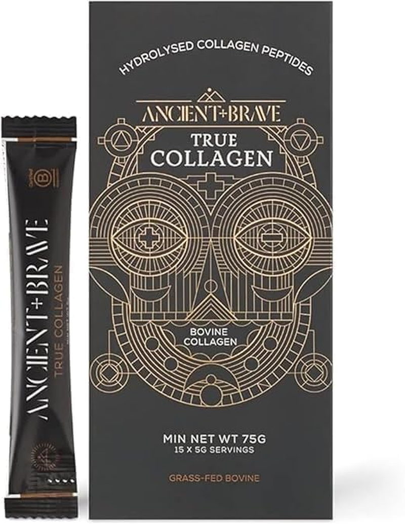 Ancient + Brave True Collagen Sachets 15 x 5 Grams - Grass-Fed Bovine Collagen Powder - 100% Hydrolyzed Collagen Peptides - High Protein - Beauty - Collagen Powder for Women - Halal & Kosher Certified