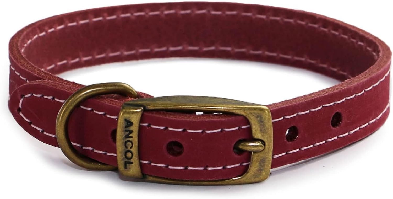 Ancol Timberwolf Premium Leather Dog Collar - Comfortable Durable Pet Training