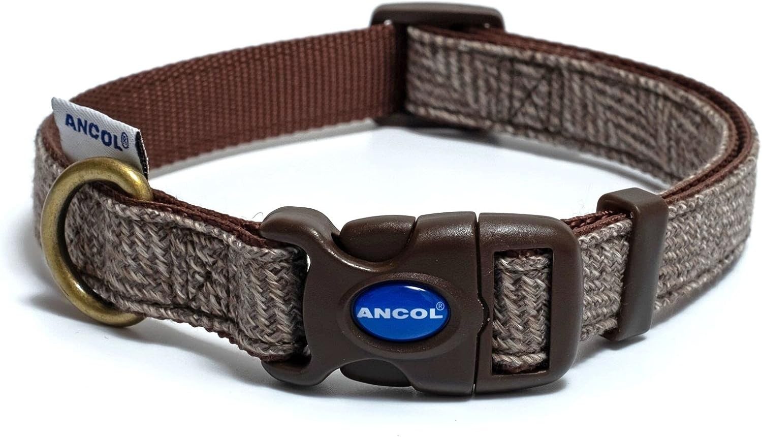 Ancol Country Herringbone Adjustable Dog Collar Brown Nylon Base with Snap Buck
