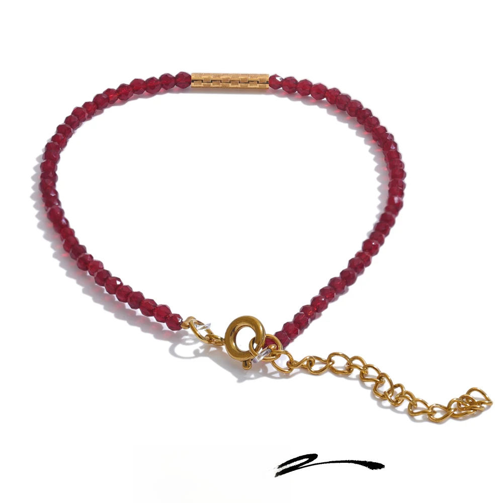 Yhpup Ancora Ankela Red Crystal Thin Bracelet Popular Fashion Exquisite Bracelet Stainless Steel Beads Handmade Jewelry