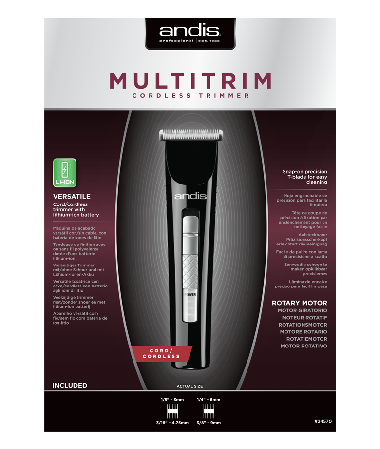 ANDIS PROFESSIONAL MULTITRIM CORDLESS TRIMMER 110-240V #24570 CLT