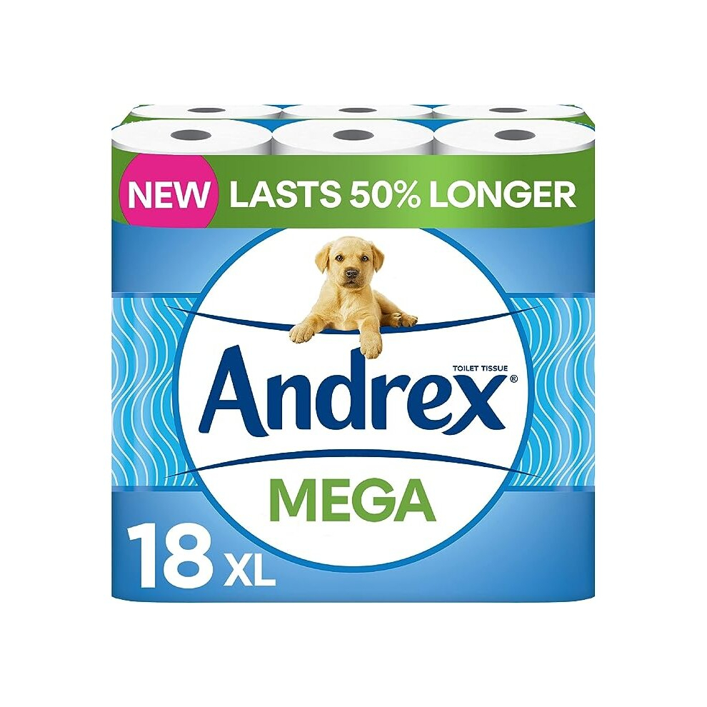 Andrex Classic Clean Mega Toilet Roll XL 12 Mega Rolls 18 Standard Rolls 2-Ply 50% More Sheets Lasts Even Longer Code: Toilet Roll, Lasts Even Longer