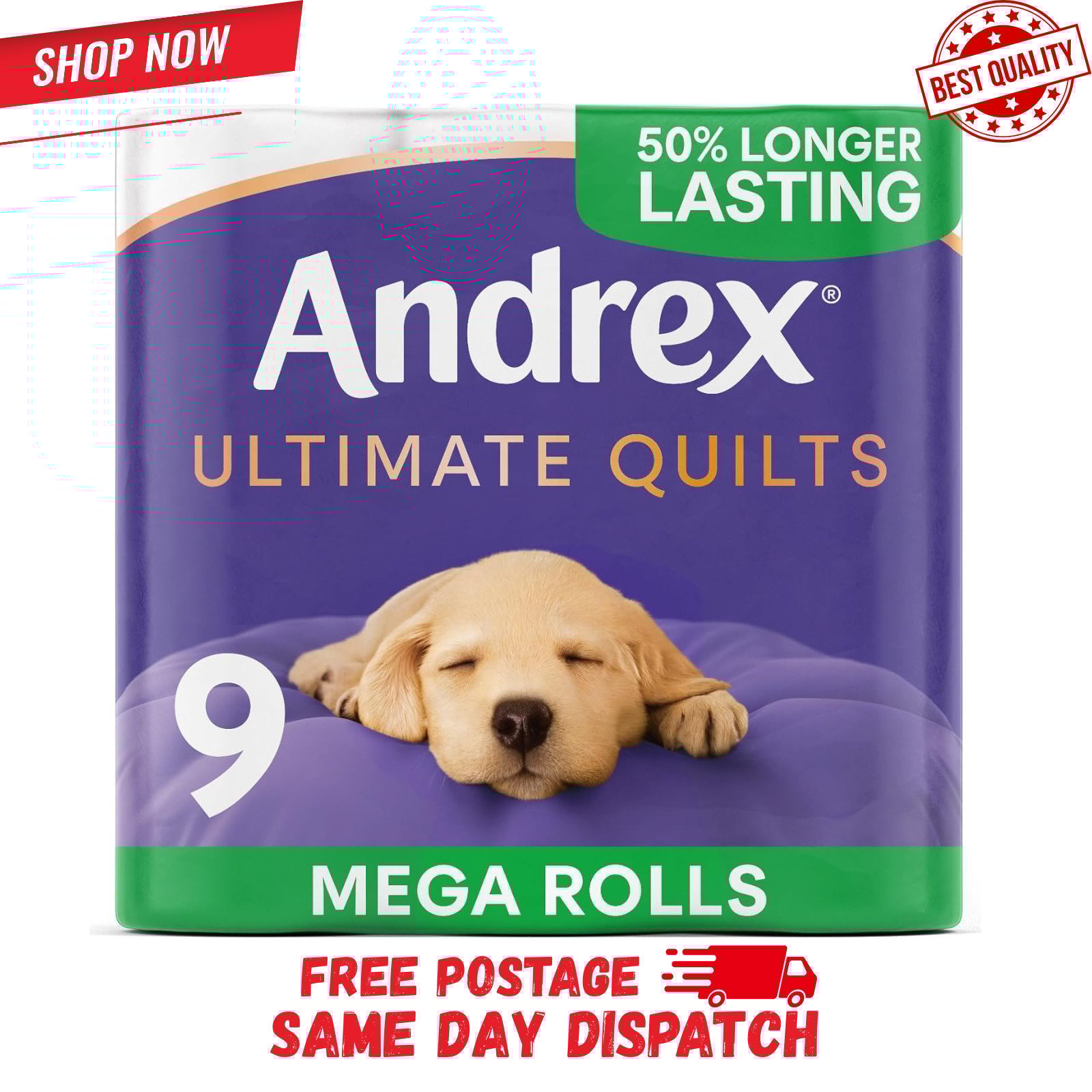 Andrex Ultimate Quilts 9 Mega Toilet Rolls = 13.5 Standard Toilet Rolls, 50%