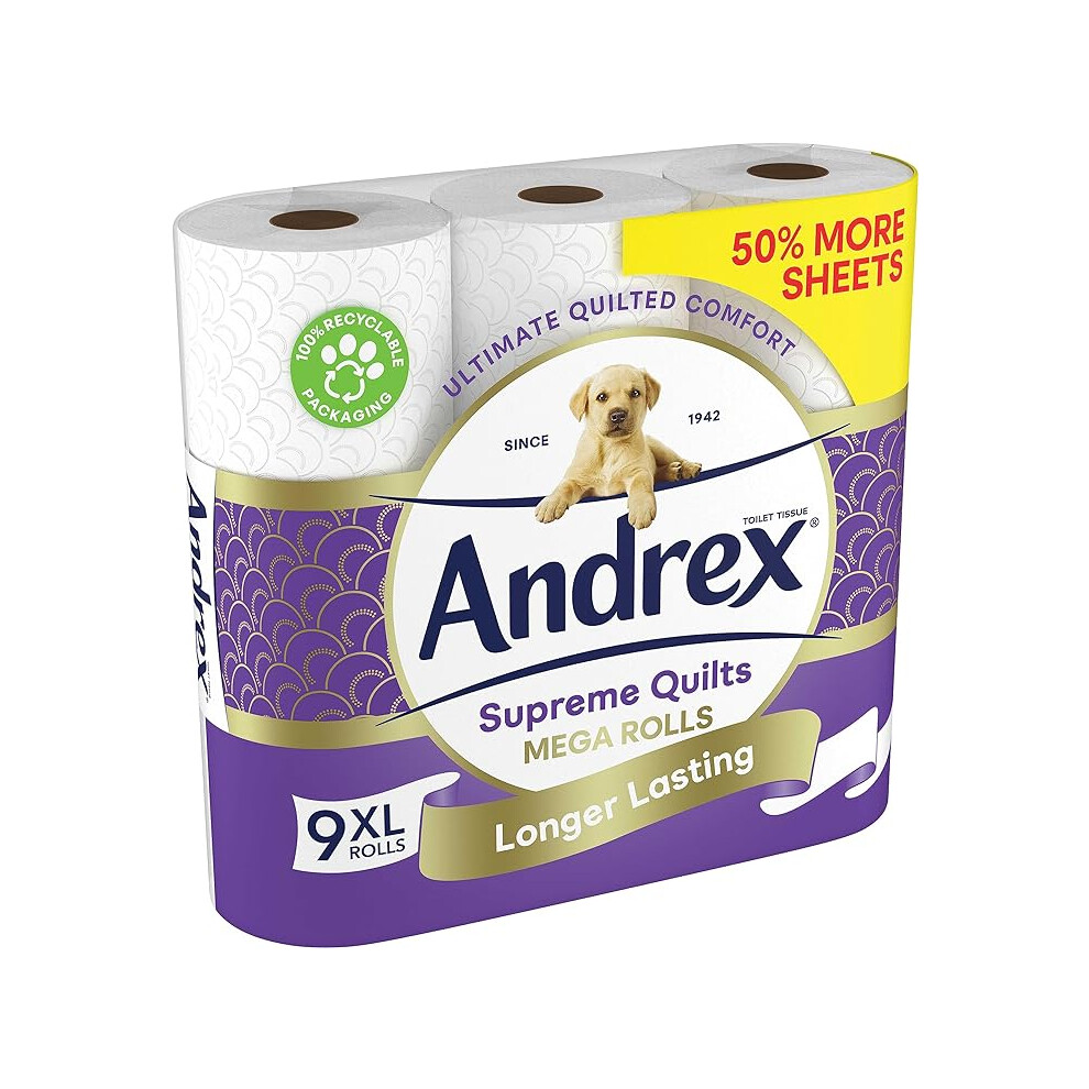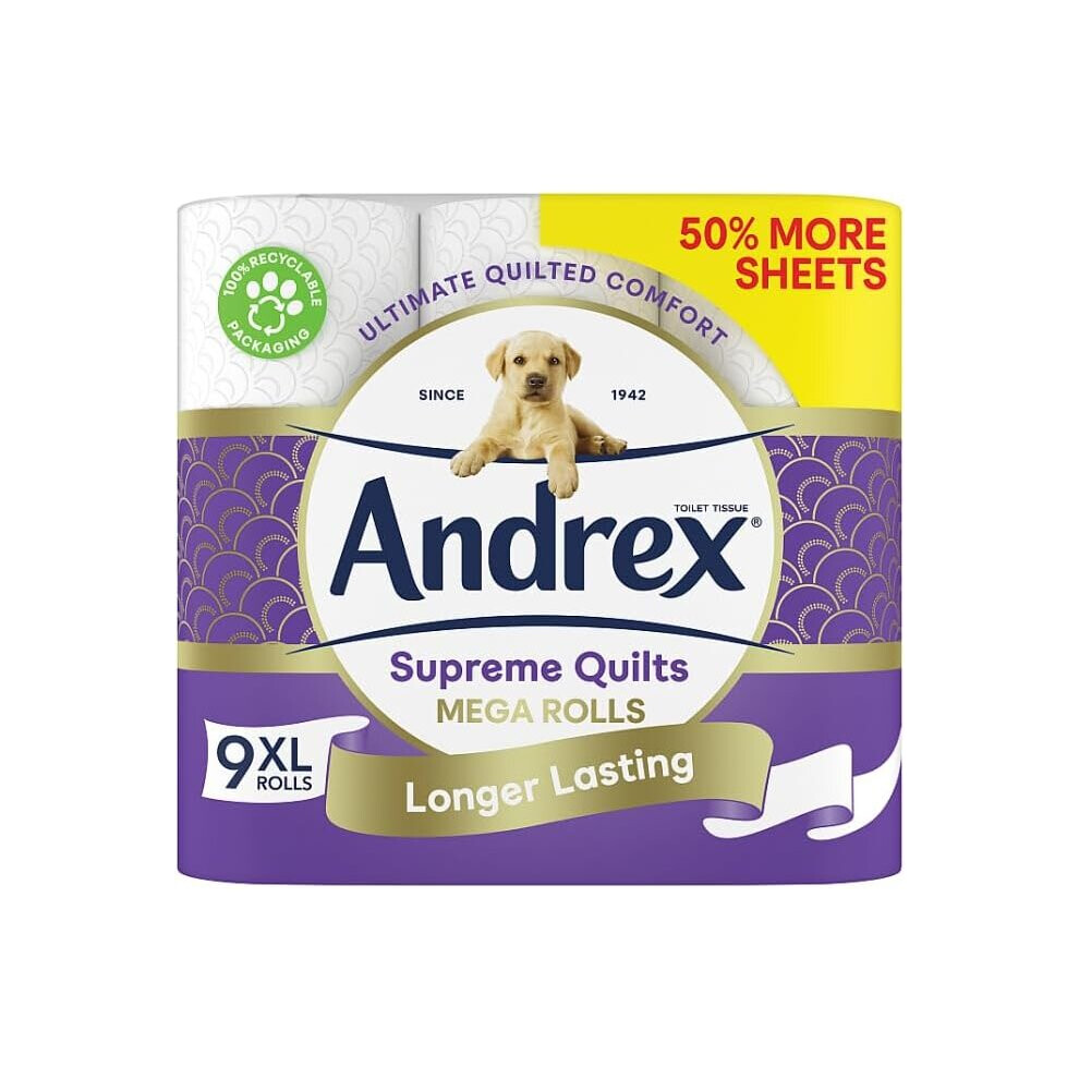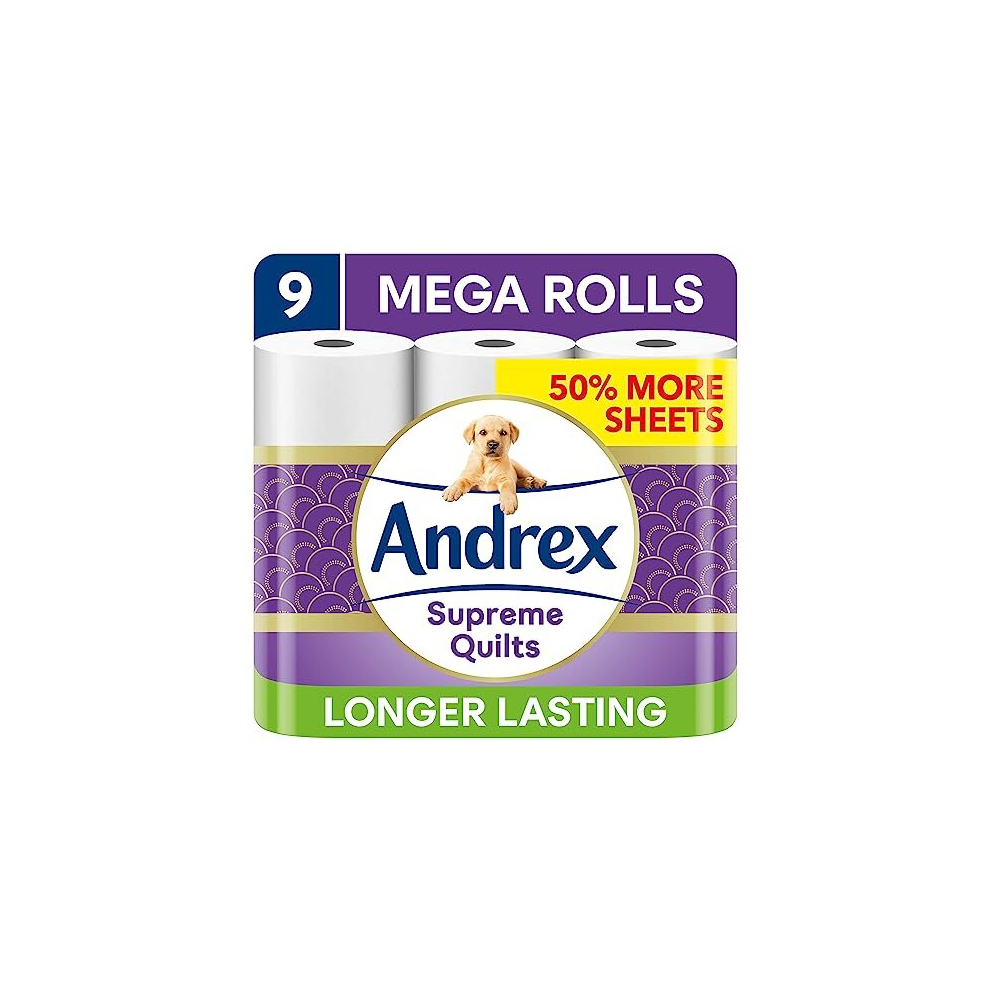 Andrex Supreme Quilts Mega 3-ply Toilet Roll, 9 Mega Rolls(13.5 Standard Toilet)