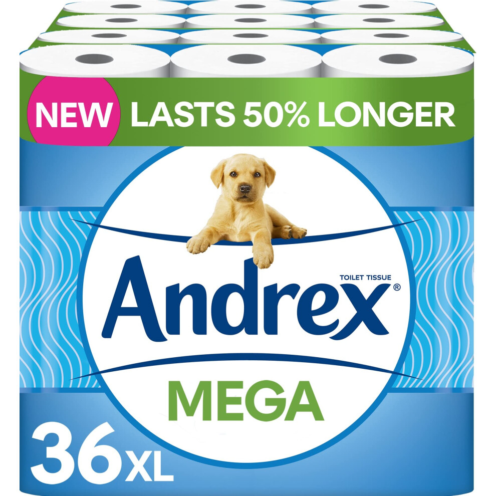 Andrex Classic Clean Mega Toilet Roll - 36 Mega XL Rolls, 50% More Sheets (4980001)
