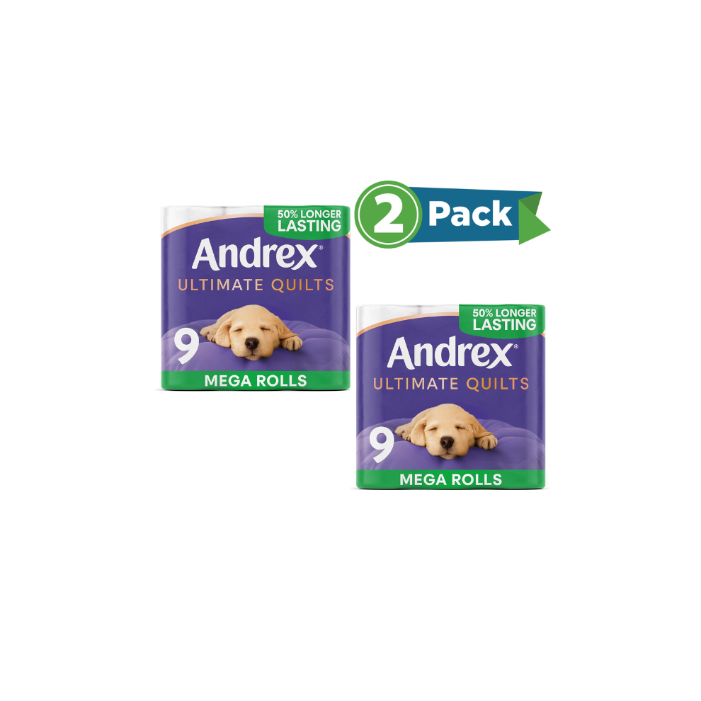 Andrex Ultimate Quilts 9 Mega Toilet Rolls = 13.5 Standard Toilet Rolls, Air Pocket Technology for Soft, Thick Sheets, FSC Certified (Pack of 2)