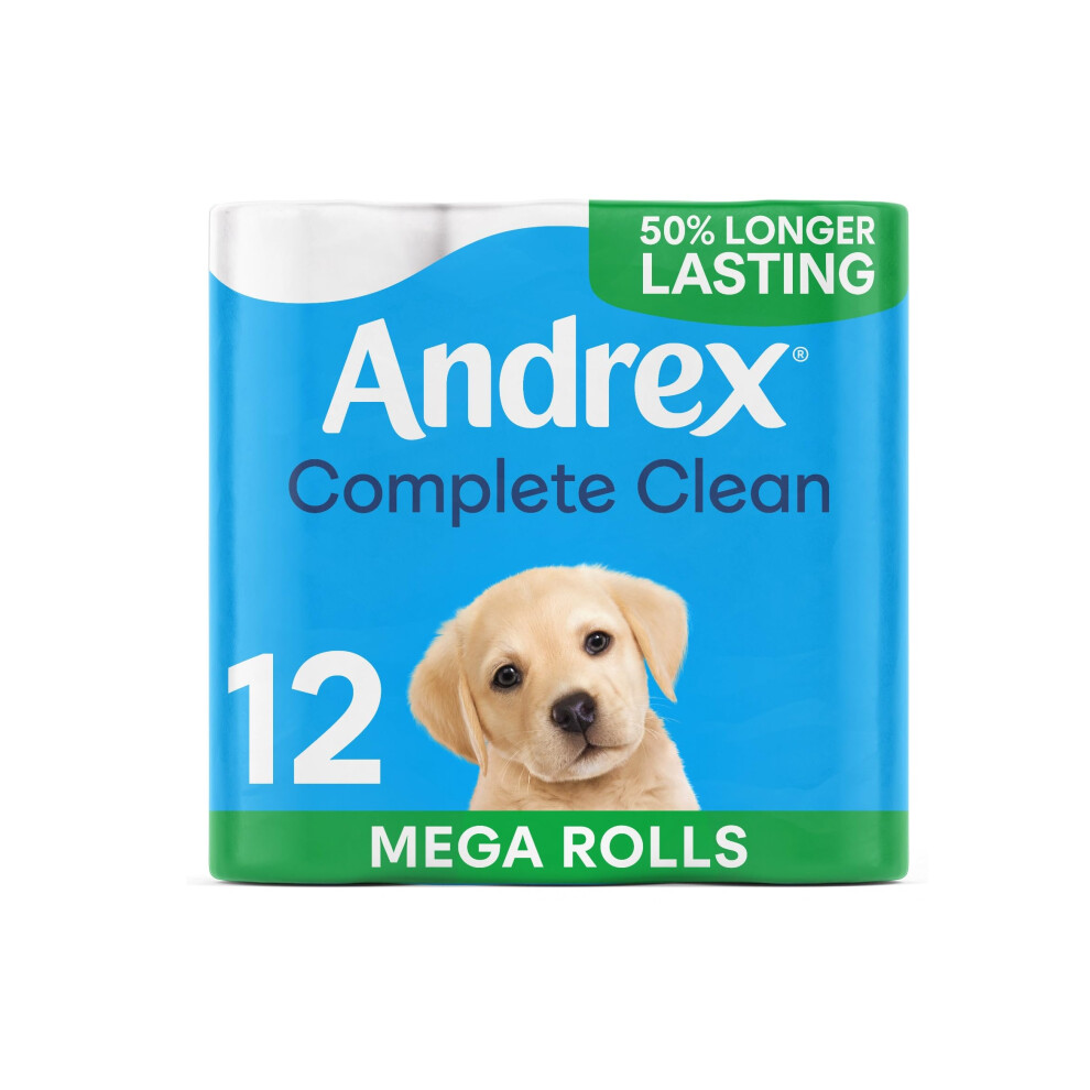 Andrex Complete Clean 12 Mega Toilet Rolls 18 Standard Toilet Rolls 50 Long