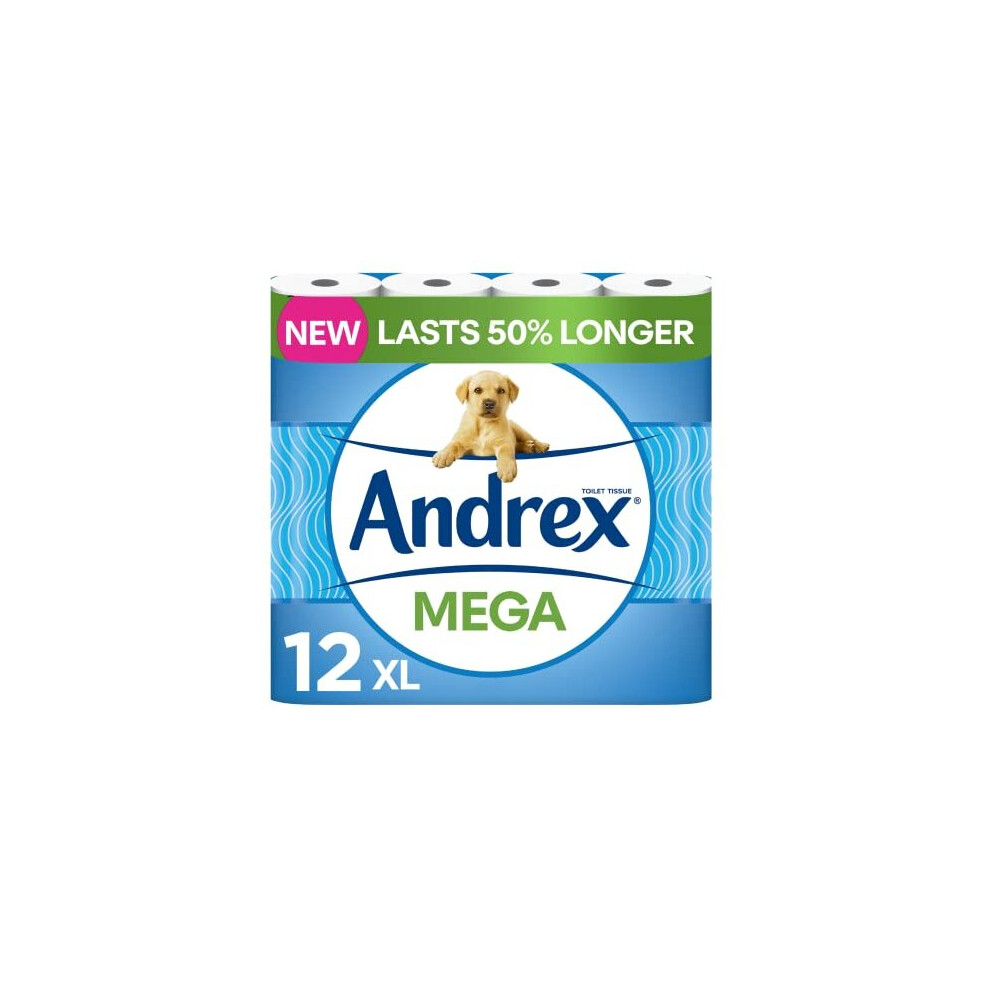 Andrex Classic Clean Mega Toilet Roll - 12 Mega XL Rolls - Same Quality Toilet Roll, Lasts Even Longer, 12 Mega Toilet Rolls = 18 Standard Toilet Roll