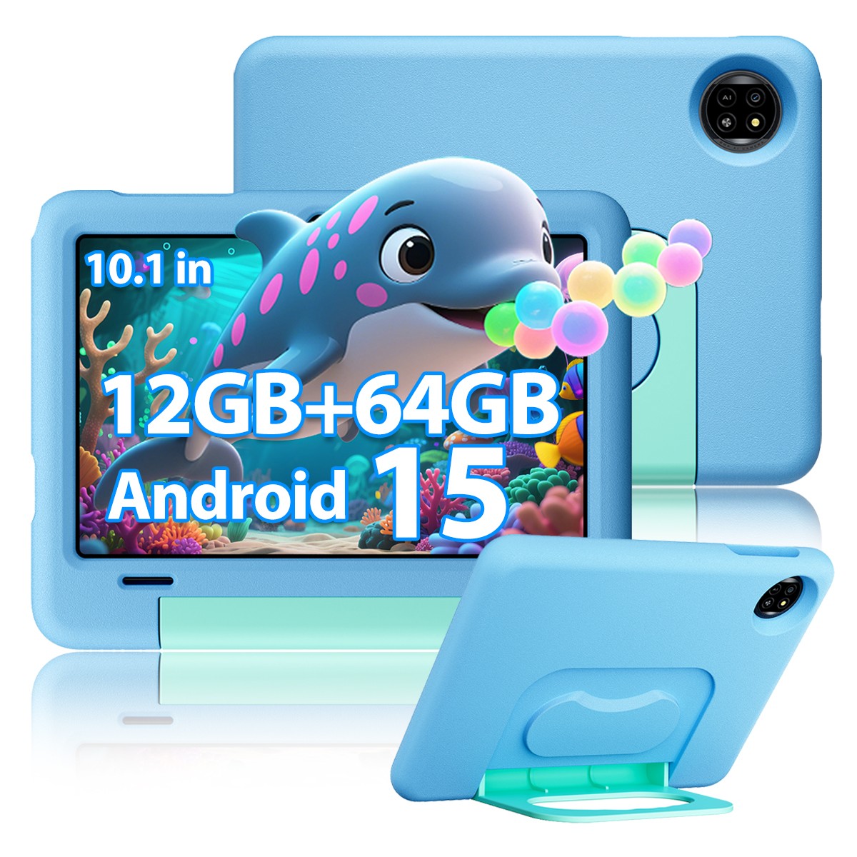 Semeakoko Kids Tablet, 10.1 Inch Andriod 14, Octa-Core,10+64GB,6000mAh,WiFi, BT 5.0,Parental Control,Google Play Store,Tablet for Toddle with Proof Case, Gift for Kids (Blue)