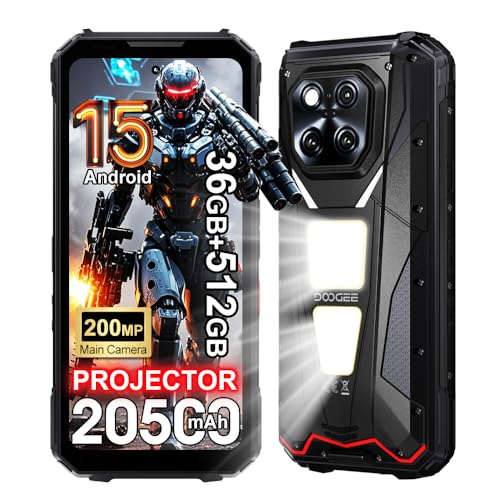 DOOGEE V Max Play 5G Rugged Smartphone with Projector, 36GB+512GB/2TB, 20500mAh 45W Android 15 Unbreakable Phone, 6.78'' FHD+ 120Hz, 200MP+20MP AI Camera, 1200LM Camping Light (Black)