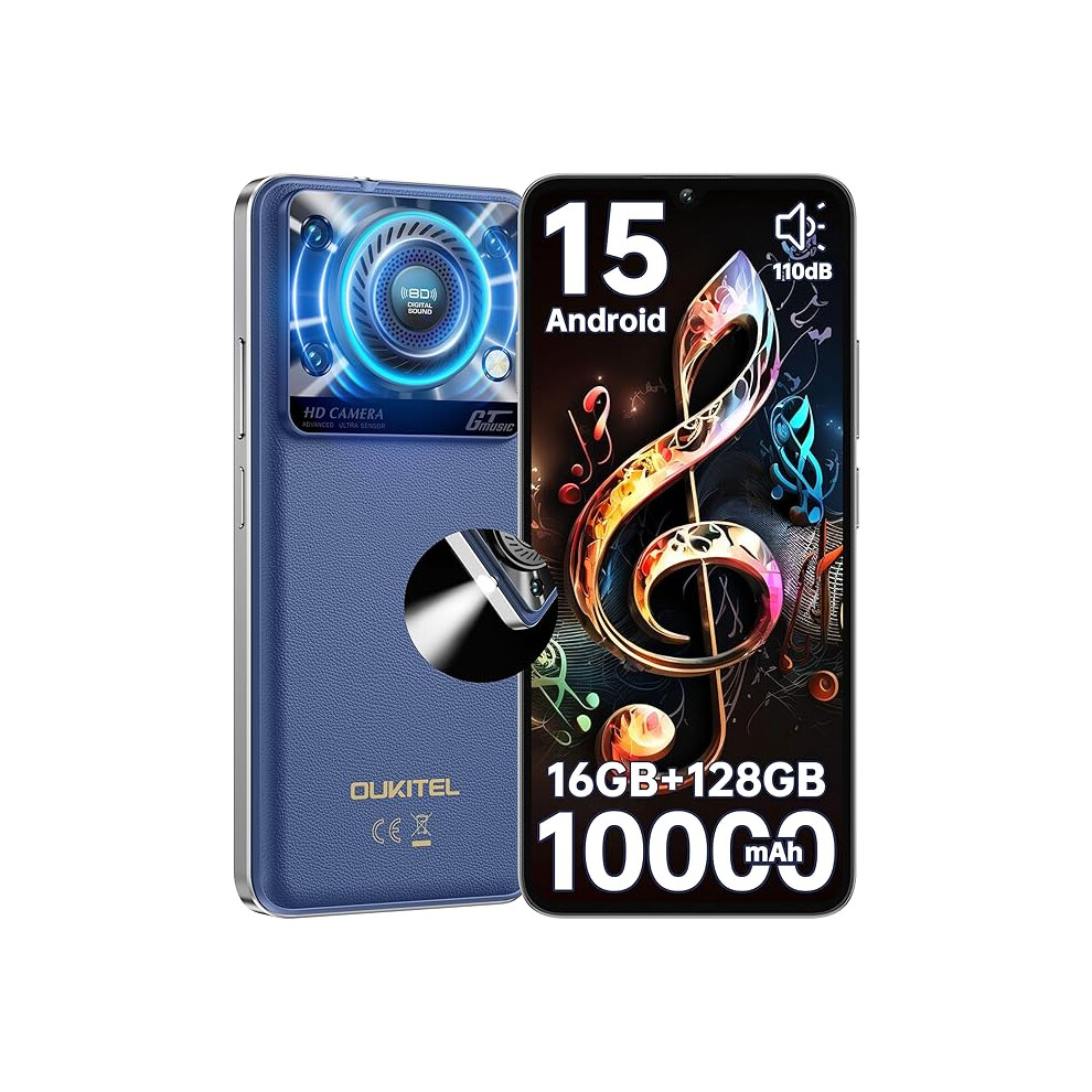 OUKITEL C60 10000mAh Large Battery Newest Android 15 Phone, 120LM Flashlight,16GB RAM+128GB ROM+1TB,6.88" HD+ Large Screen,4G Dual