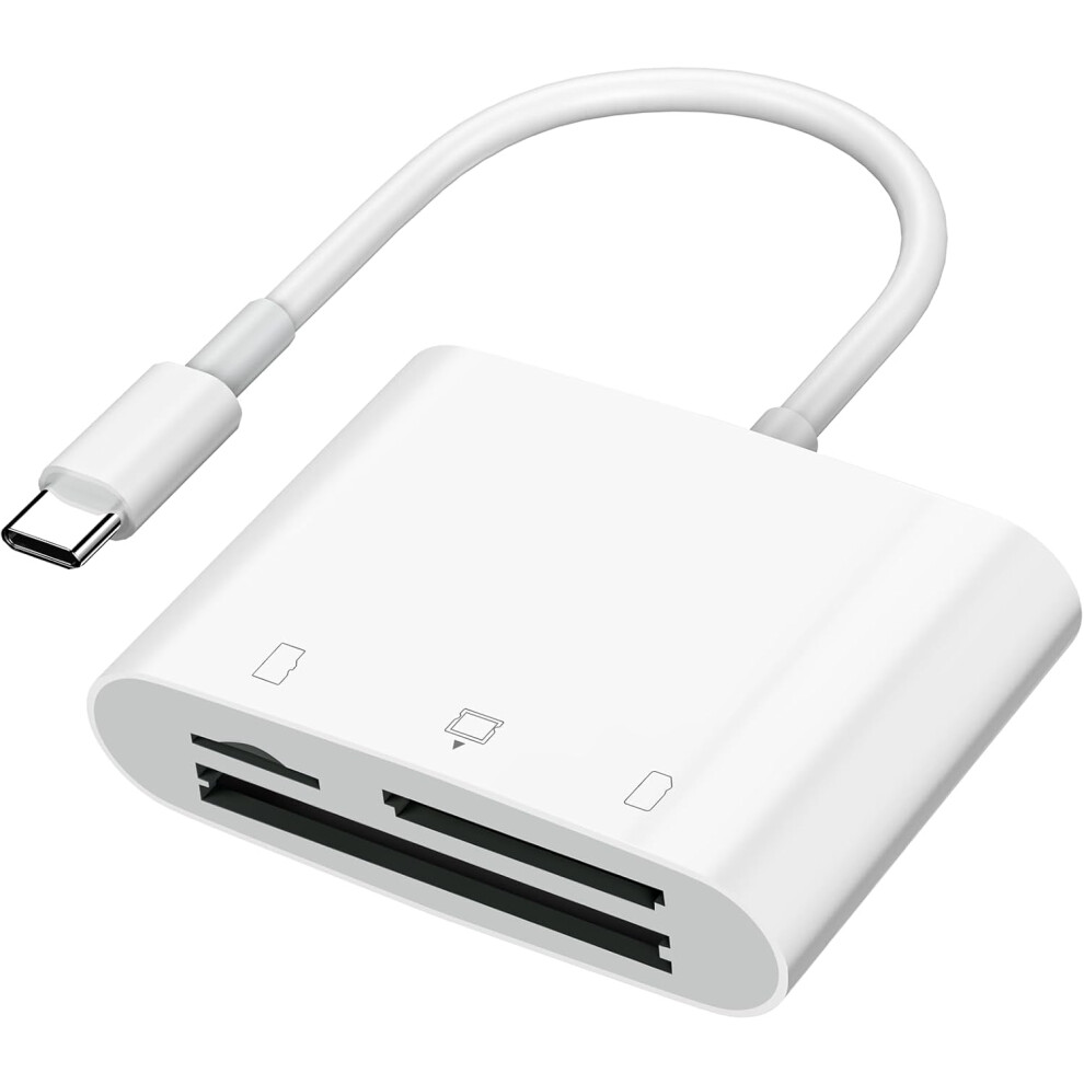 SD Card Reader USB C for iPhone 15/Android Phone/iPad/Mac/Laptop, Three Card Slot Micro SD Card Reader Supports SD Micro SD CF Card, Digital Camera Vi