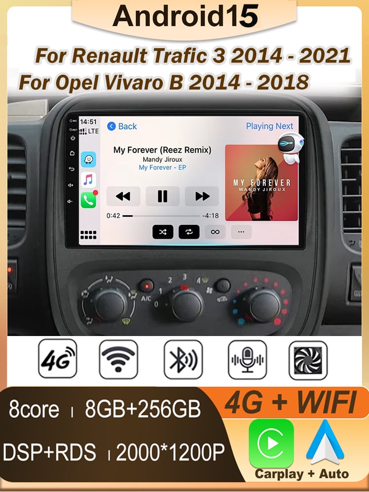 Car Radio For Renault Trafic 3 2014 - 2021 For Opel Vivaro B 2014 - 2018 Carplay Android Auto Stereo Multimedia 2din DVD 8core