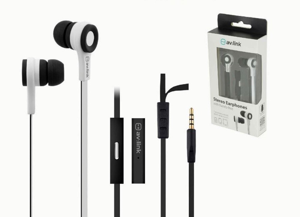 AV:Link Black & White Wired Earphones In-Ear Headphones For IOS & Android Rubber