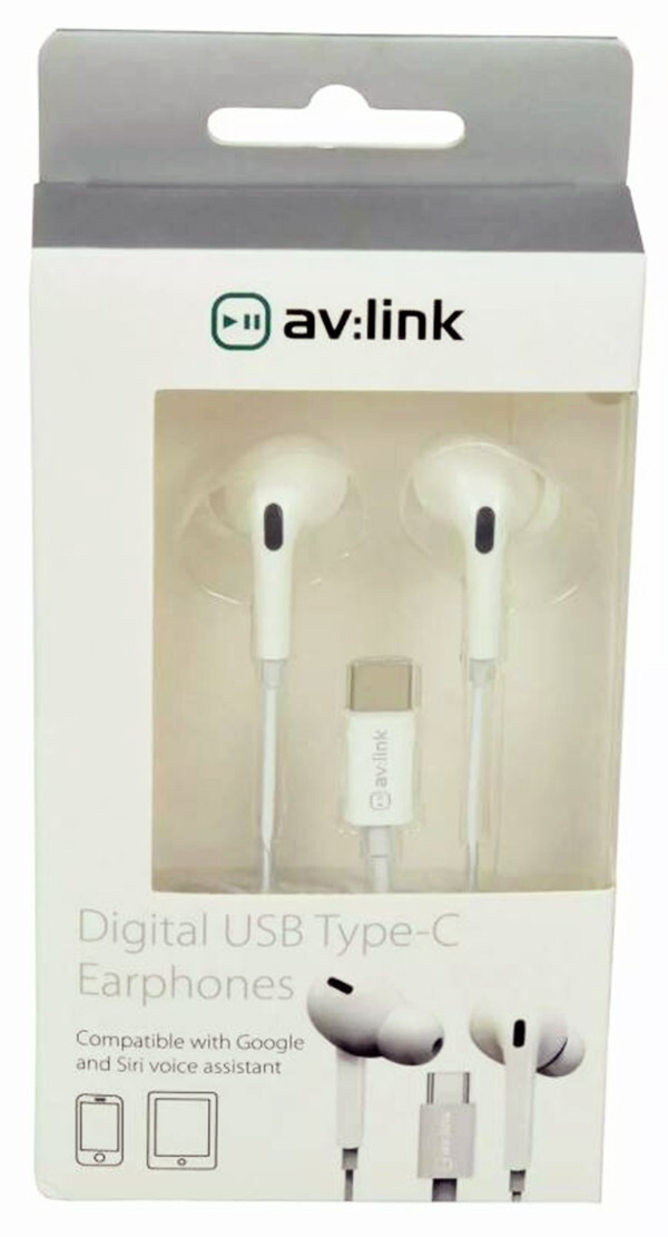 AV:Link White USB TYPE C Wired Earphones In-Ear Headphones For IOS & Android NEW