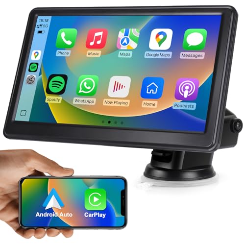 9'' Carplay Screen for Car, Wireless Carplay & Android Auto, Portable Car Play Screen with 1080P Backup Camera, Android Auto Screen with Mirror Link, Bluetooth, GPS Navigation, Voice Assistant
